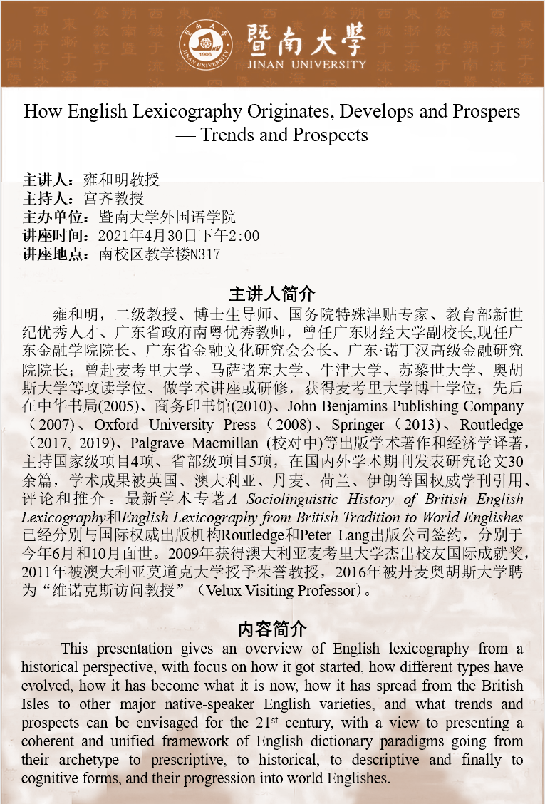 外國語學院講座:英語詞典學的起源、發展、現狀與前景